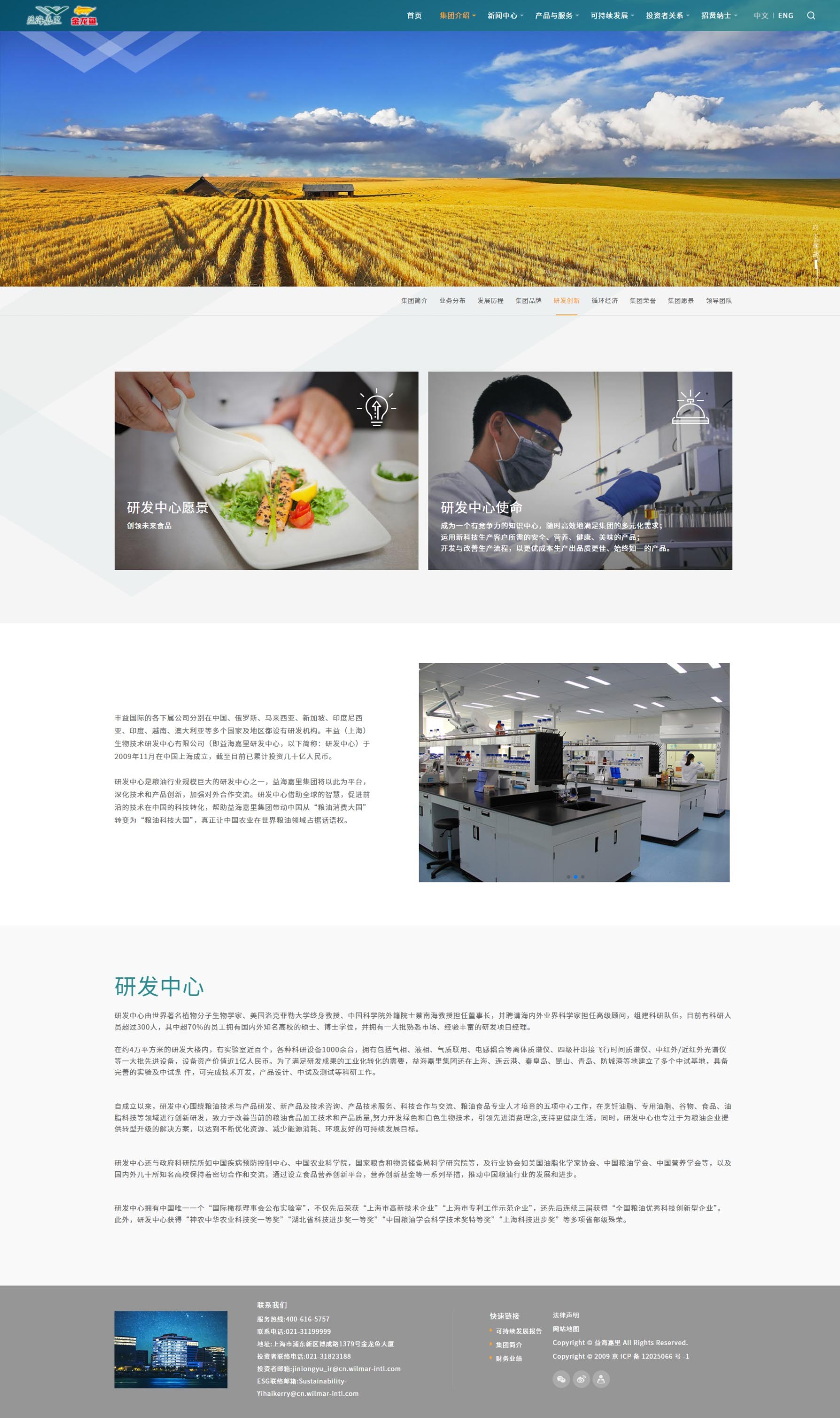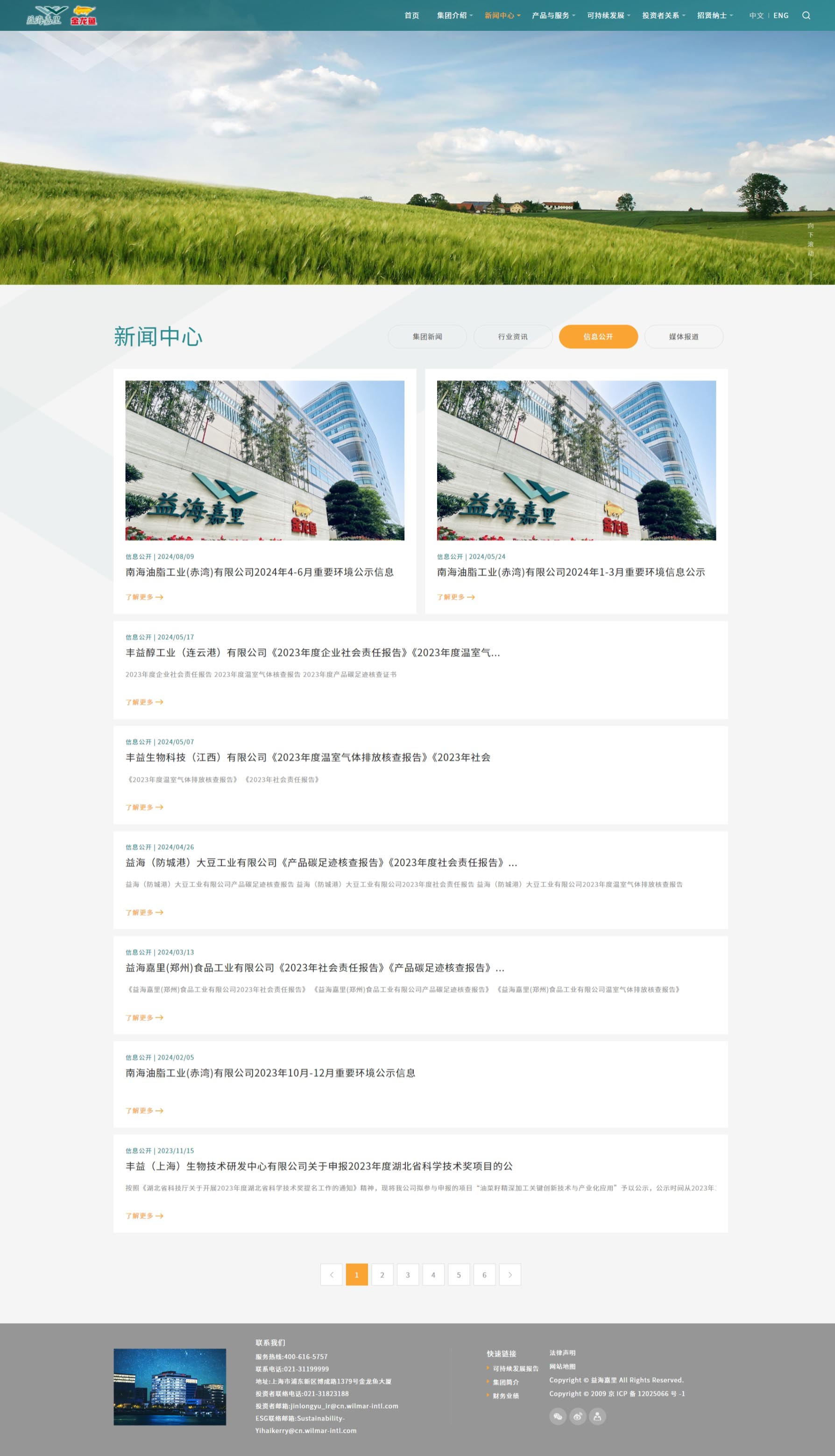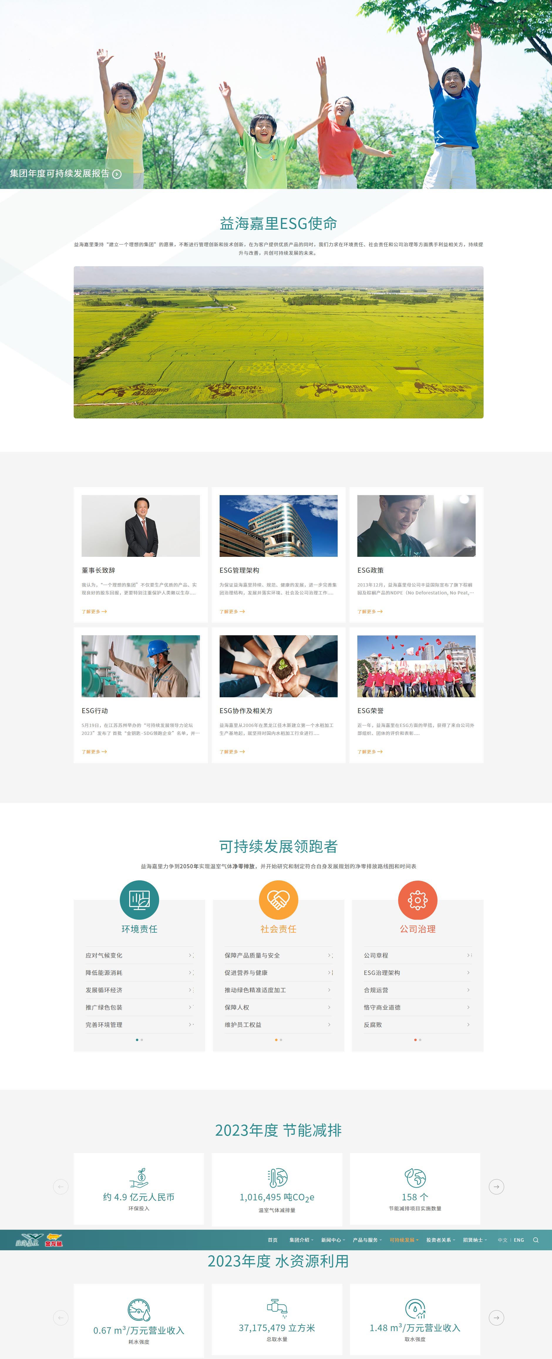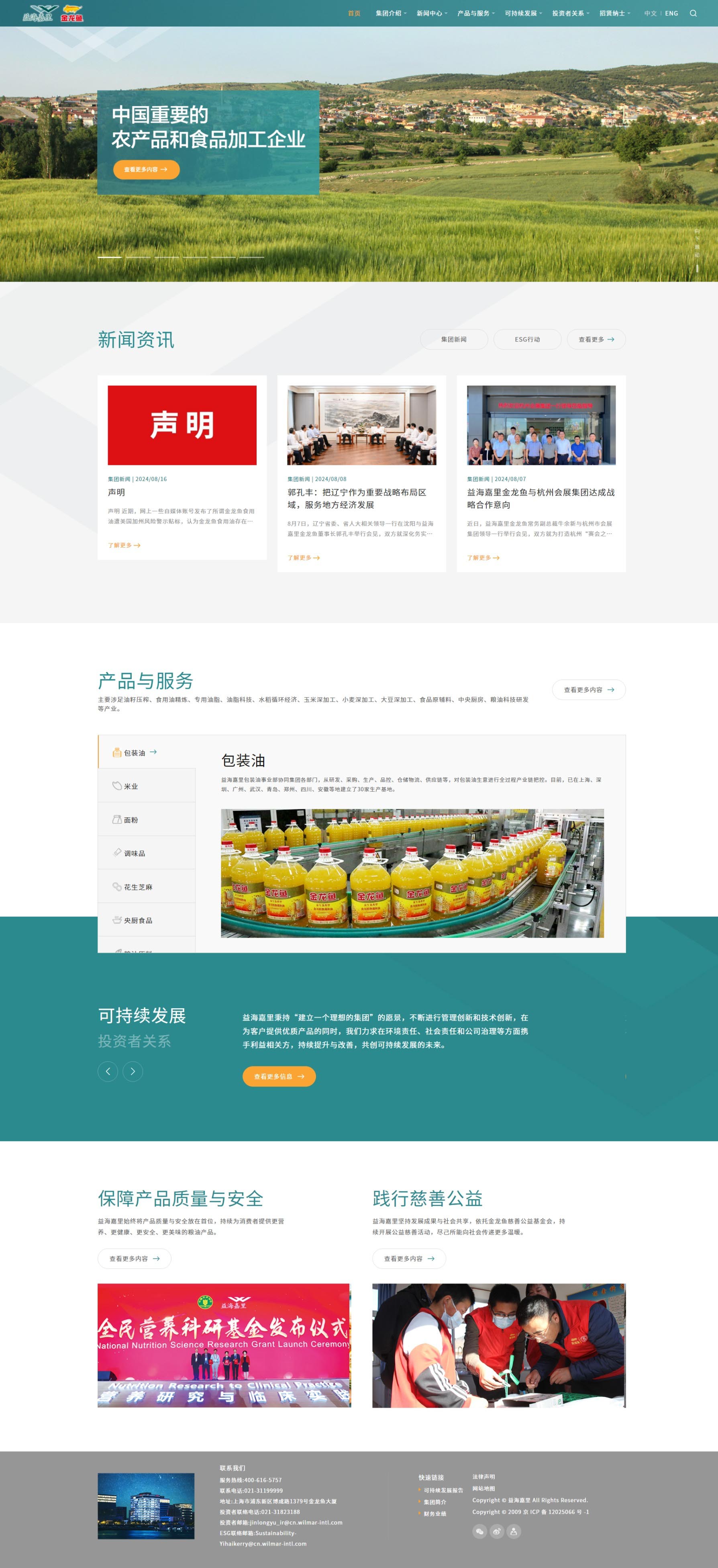 益海嘉里网站设计独特,以活力深绿为主色,辅以经典黑白,特色墨绿点缀其间。深绿彰显企业活力与温暖,黑白平衡视觉,提升内容可读性;墨绿则传递自然、健康与环保理念。色彩搭配和谐统一,既展现了企业的年轻态与创新精神,又突出了对品质与可持续发展的承诺。