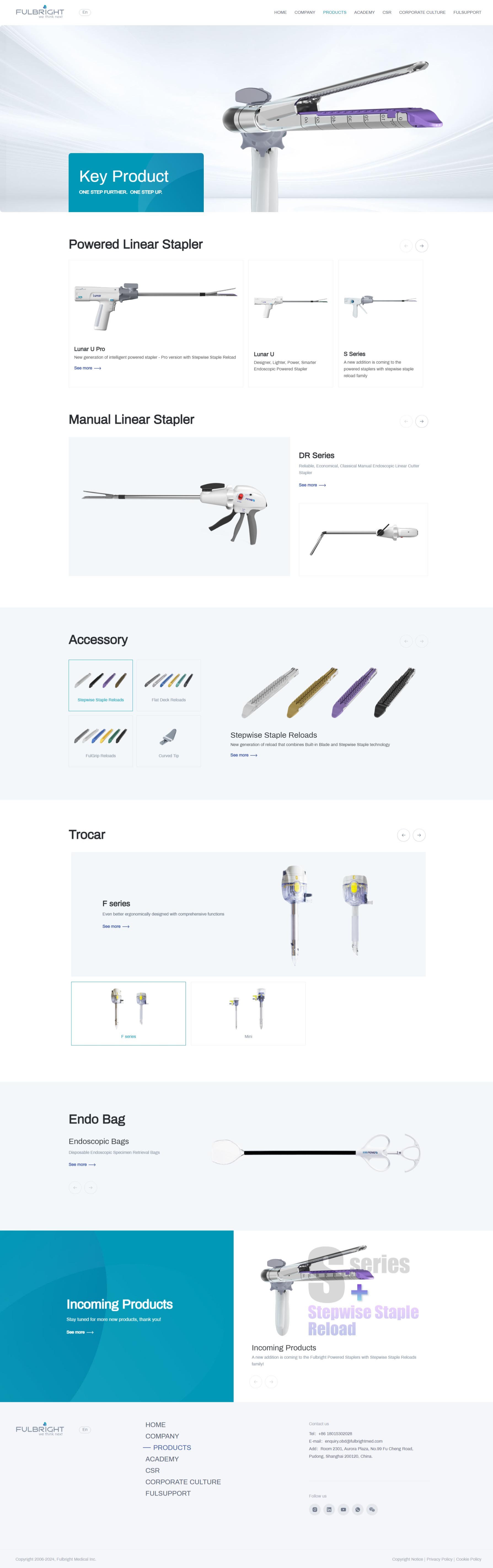 风和医疗器械网站设计精致,以白色为主色调,彰显专业与稳重,同时融合淡粉色与黑色作为辅色,增强视觉层次与信赖感。白色点缀其间,提亮页面,保持清新活力。色彩搭配既体现了医疗行业的严谨性,又传达了企业对未来科技的探索精神。