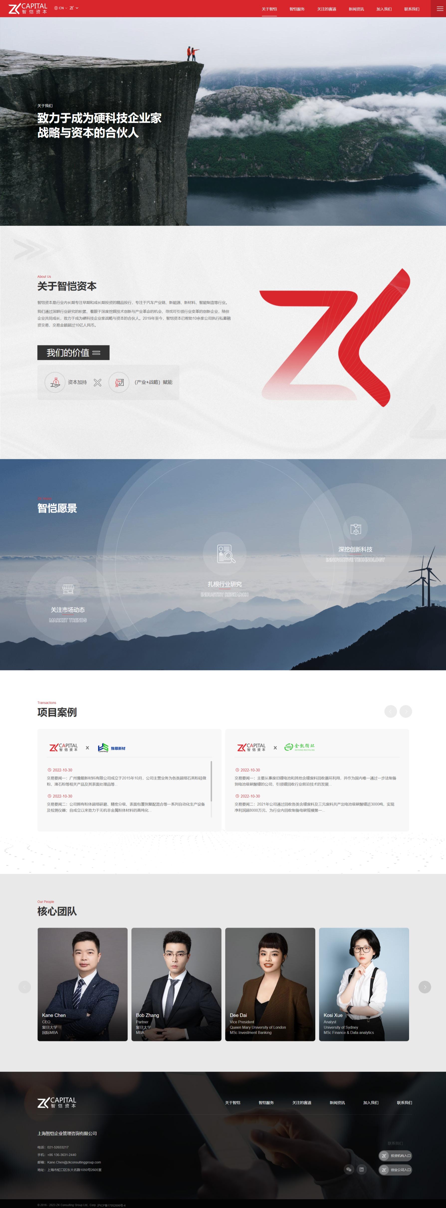 智恺资本网站风格定位精准,融合专业与活力,展现现代感与细节关怀。以红色为主调,彰显企业热情与进取,辅以灰白黑,营造稳重氛围。布局清晰,导航便捷,信息架构合理,确保用户高效浏览。多媒体内容丰富,展示企业专业实力与创新成果。同时,注重细节处理,如优化加载速度、减少干扰元素,提升用户体验。