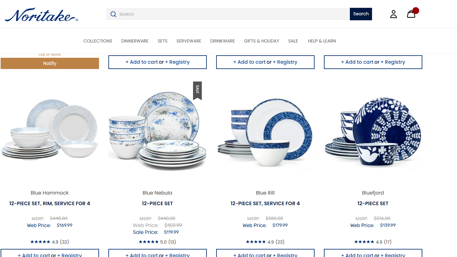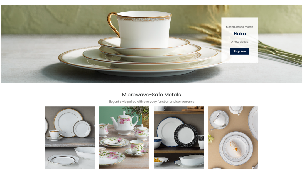 视觉方面:产品图片拍摄精美,多角度展示餐具的外观和细节,在白色背景的衬托下,餐具的质感和设计得以充分体现,提升了品牌的高端形象。页面布局简洁大方,产品分类和促销信息的排版整齐有序,使用户在浏览过程中感受到舒适和专业。交互方面:点击产品图片或名称可进入详细页面查看更多信息,操作流畅。购物流程较为简洁,添加到购物车和结算的按钮明显,方便用户进行购买操作。然而,缺乏产品搜索功能,当用户有特定产品需求时,可能需要花费较多时间在众多产品中查找。
