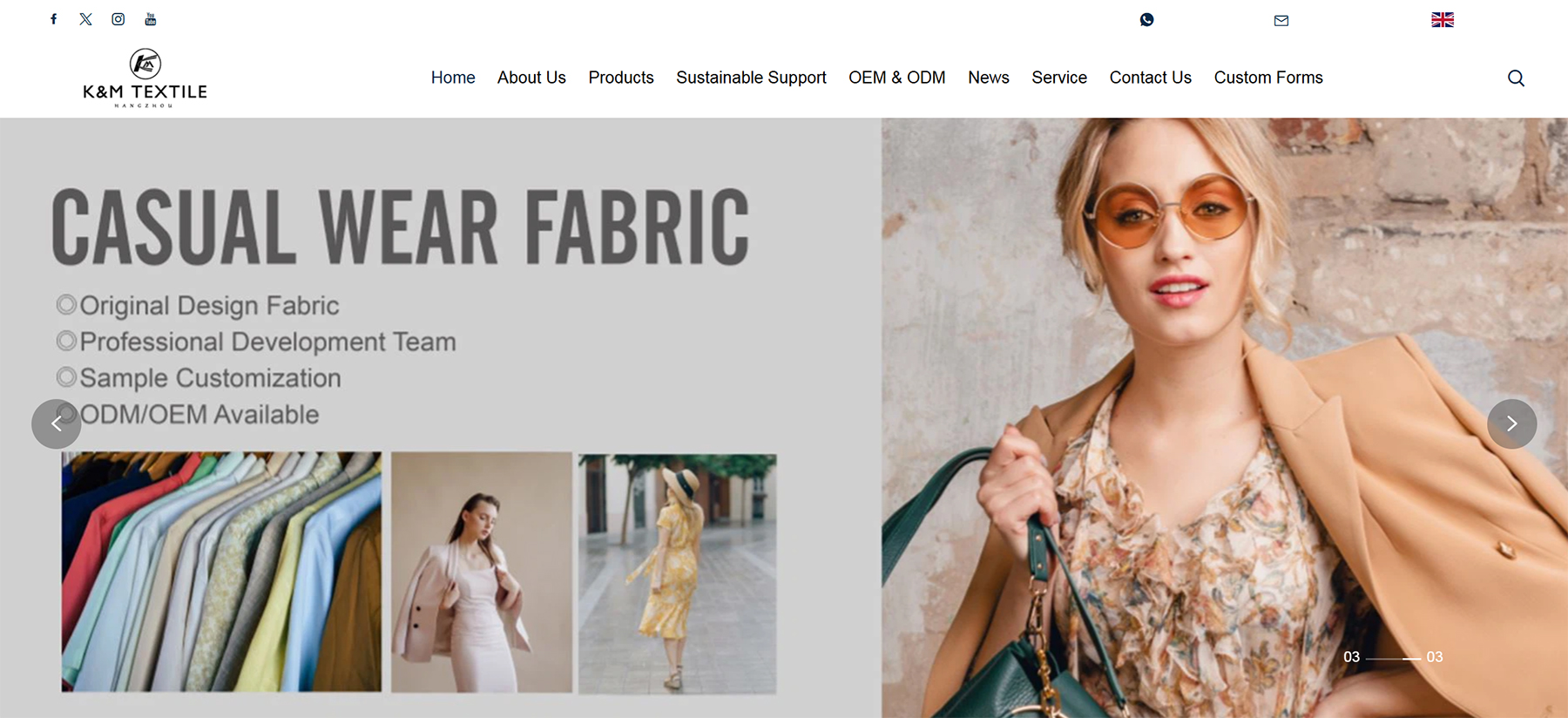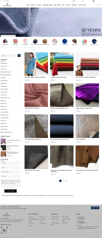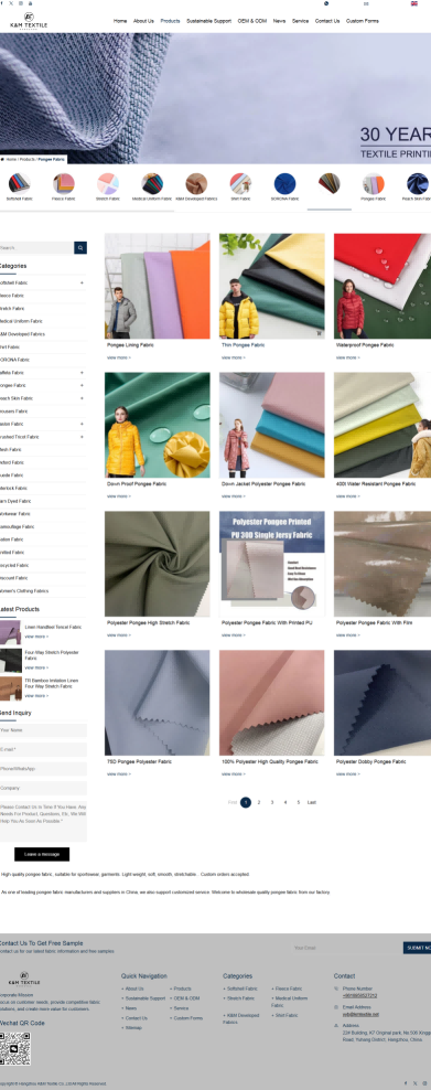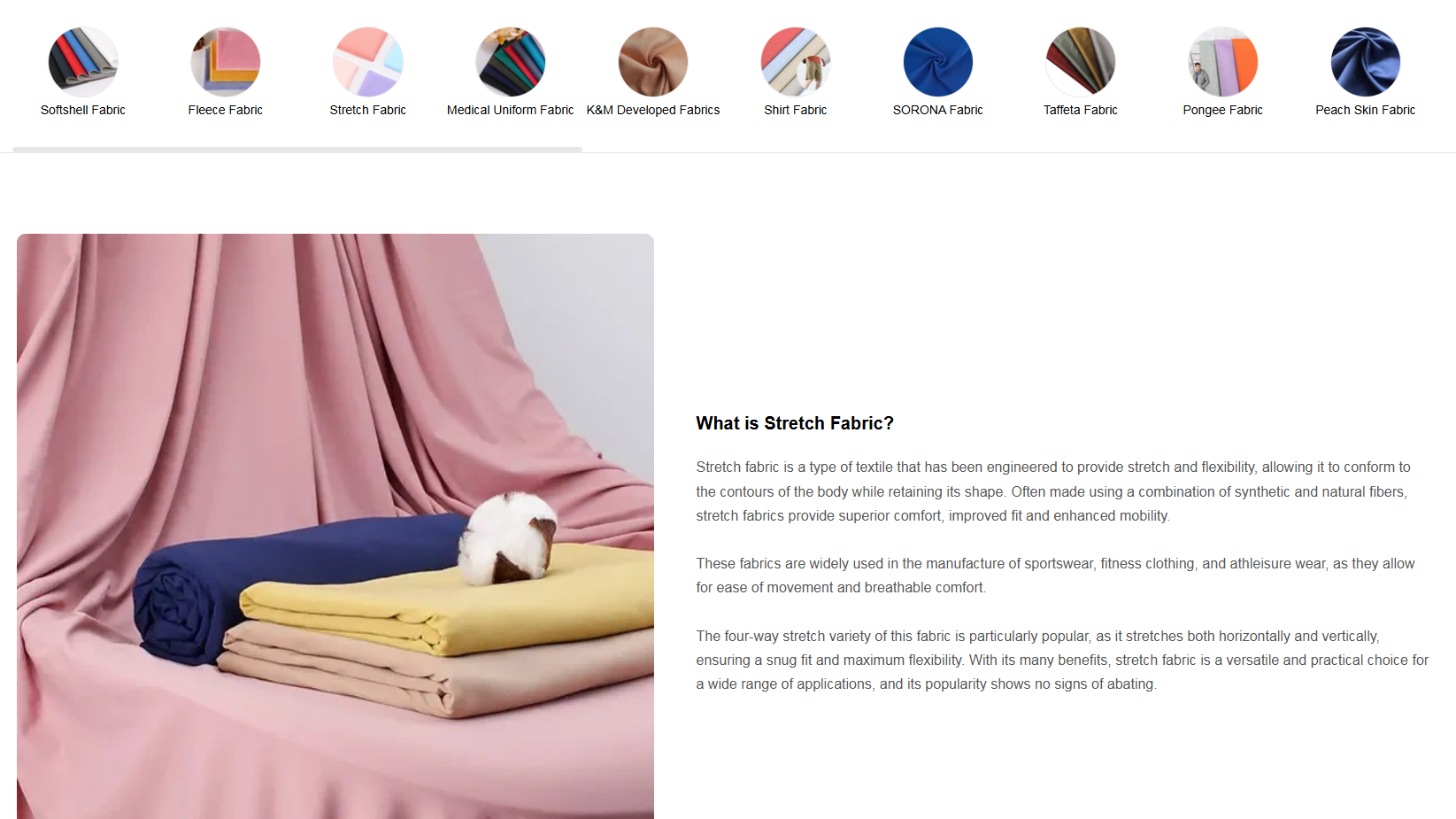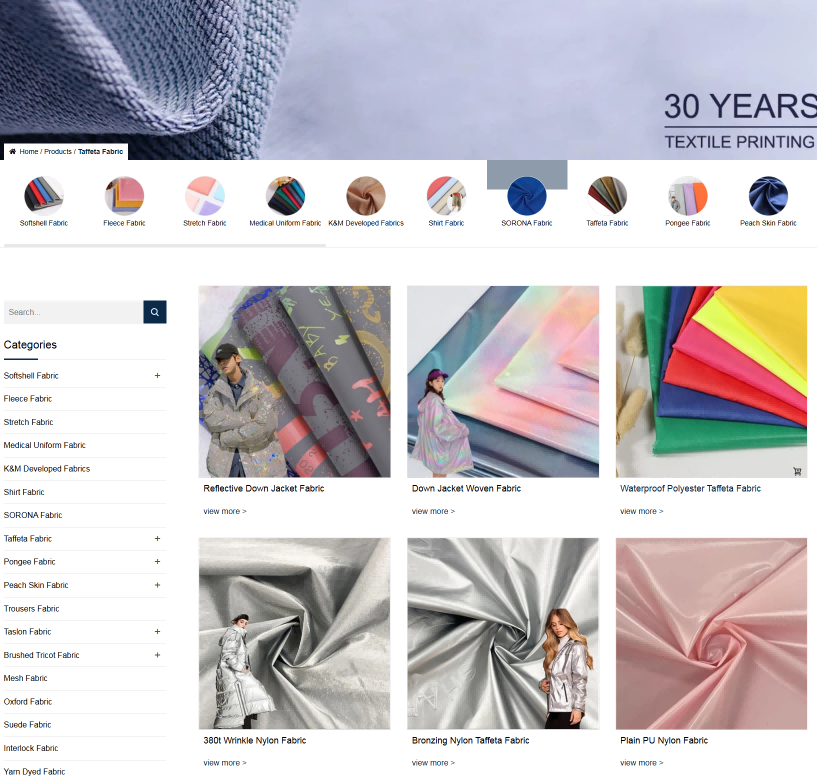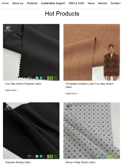 视觉方面:产品图片展示较为清晰,能让用户初步观察到面料的外观和质感,但图片的丰富度和细节展示还有提升空间。页面布局较为规整,产品分类和资讯板块区分明确,但整体设计缺乏独特的视觉风格,在众多纺织网站中辨识度不高。