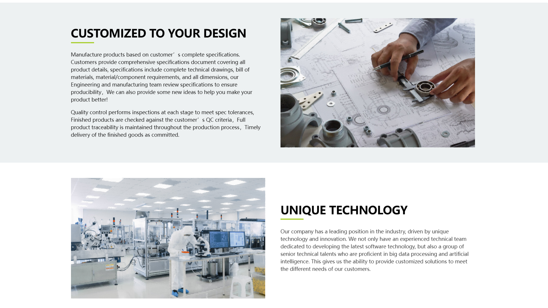整体风格简约专业、务实严谨。布局清晰合理,首页以产品分类导航和核心优势展示引导用户深入了解。产品页面参数详尽、文字简洁准确,并配以图片增强直观性。整体设计围绕用户需求,突出产品品质与企业实力,摒弃过多繁杂装饰,为用户打造高效、便捷的浏览体验,增强用户对品牌的信任与合作意愿。